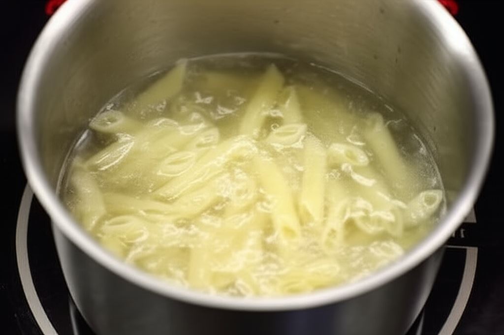 Ugotuj makaron i przenieś ugotowany makaron do naczynia żaroodpornego.