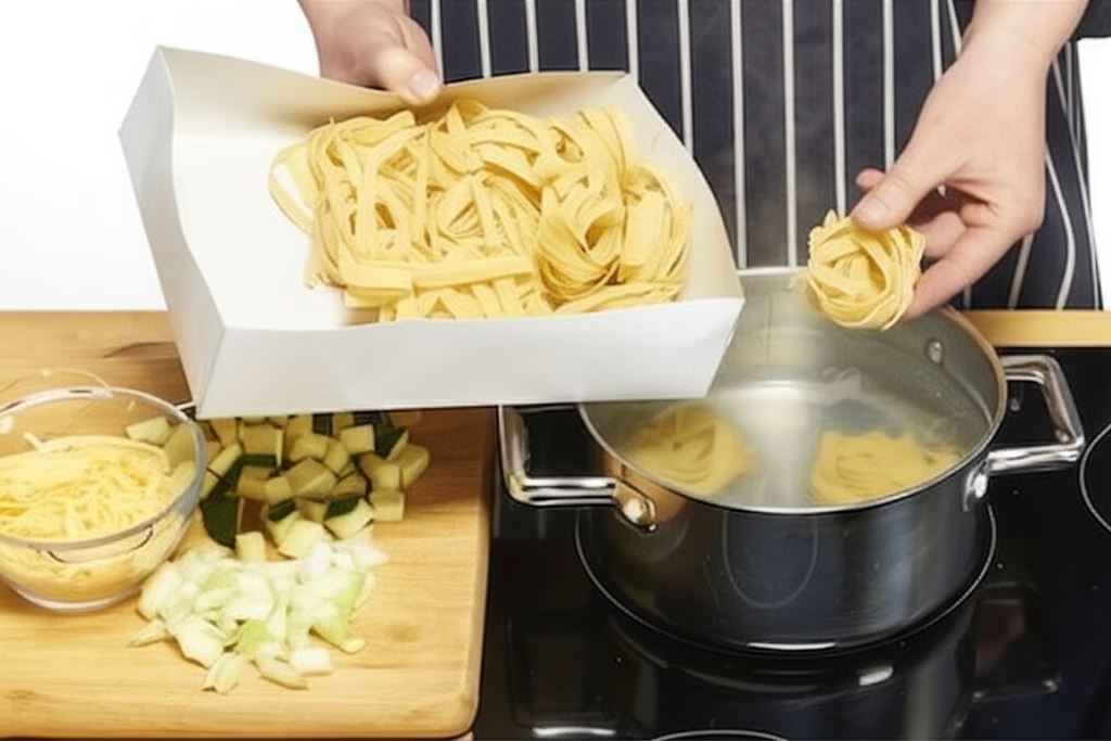 Sekret tej zapiekanki tkwi w idealnym balansie składników. Najpierw podsmażamy kurczaka do złocistego koloru, następnie dodajemy plasterki cukinii, które zachowują swoją jędrność i świeżość. Szeroki makaron typu tagliatelle lub papardelle doskonale komponuje się z pozostałymi składnikami, wchłaniając aromaty sosu.