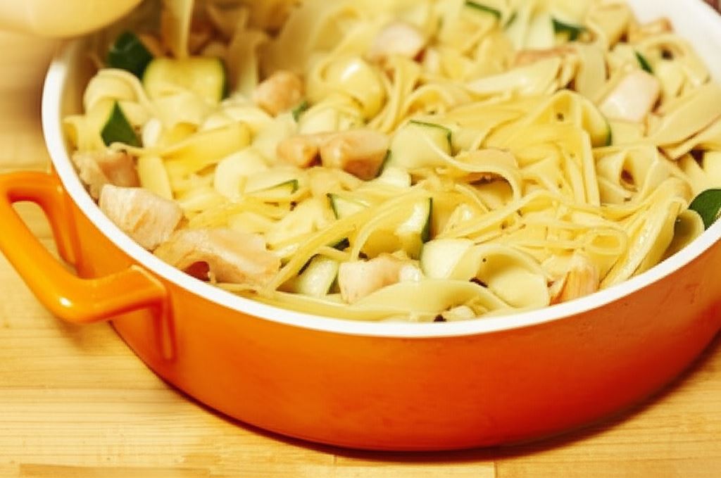 Szukasz pomysłu na sycące danie, które zachwyci całą rodzinę? Nasza kremowa zapiekanka z cukinią i kurczakiem to prawdziwa uczta dla podniebienia! Soczyste kawałki kurczaka, delikatna cukinia i al dente ugotowany makaron tworzą harmonijne połączenie, które otula kremowy sos na bazie mleka i jajek.