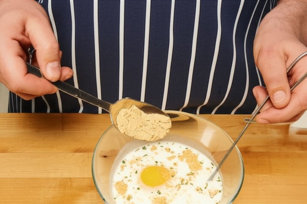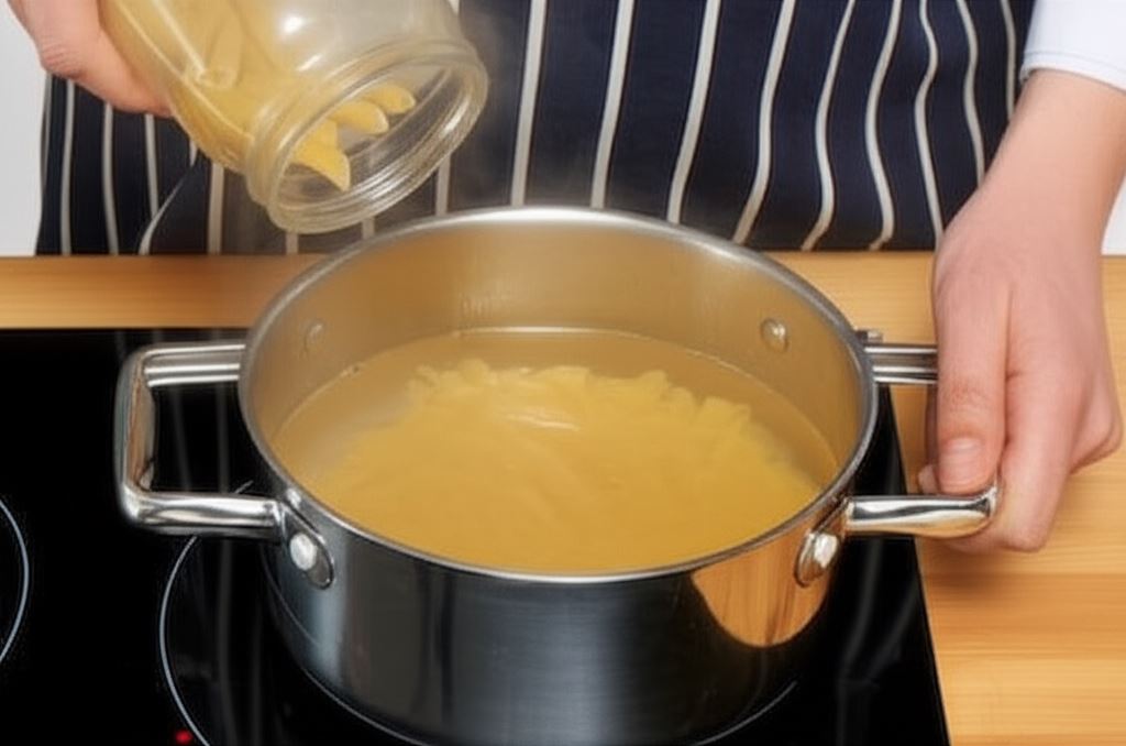 Połącz mleko z Knorr Naturalnie smaczne. Wbij jedno jajko. Potem zmieszaj makaron, szynkę i warzywa.