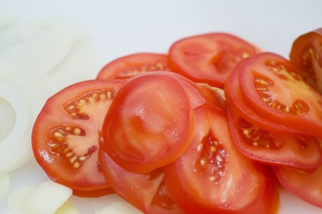 Pokrój bakłażany, pomidory, ziemniaki, czosnek i cebulę na cienkie plastry.