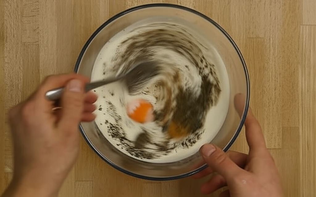 Sporządź sos do zapiekanki z ziemniakami i kiełbasą – śmietanę połącz z przyprawami (przyprawą włoską Knorr, pieprzem, gałką muszkatołową) i jajkami, dodaj soli według gustu.