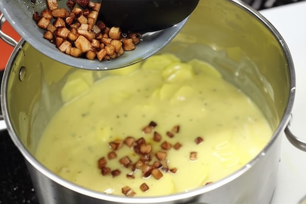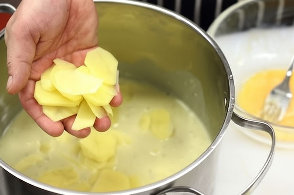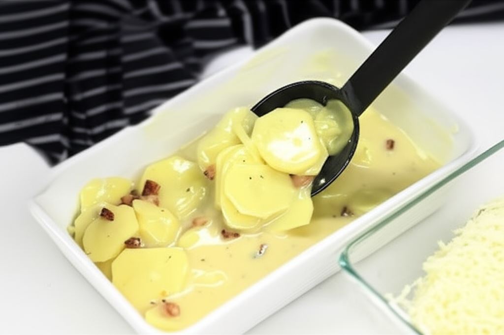 Kluczem do udanej zapiekanki jest odpowiednio przygotowany sos serowo-śmietanowy, który nadaje potrawie kremową konsystencję. Ziemniaki pokrojone w cienkie plastry nasiąkają aromatem przypraw i stają się miękkie podczas pieczenia. Dzięki temu każdy kęs jest pełen smaku.