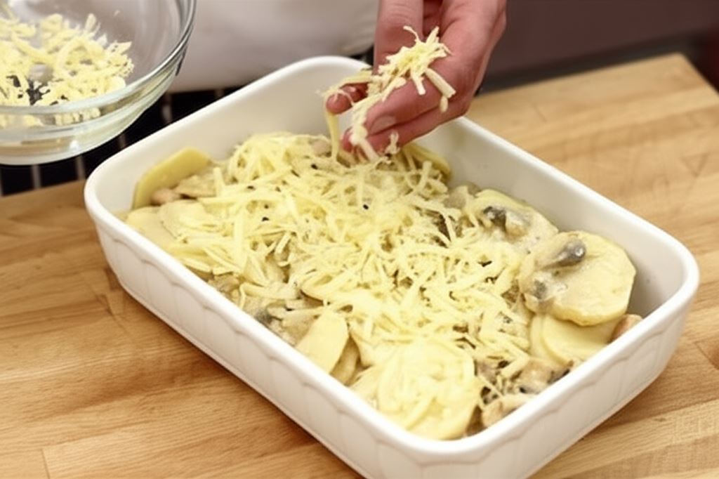Aby uzyskać idealnie zapieczoną warstwę sera, warto dodać go dopiero na 15-20 minut przed końcem pieczenia. Dzięki temu ser pozostanie miękki i apetycznie ciągnący się, zamiast stać się suchy i zbyt mocno przypieczony.