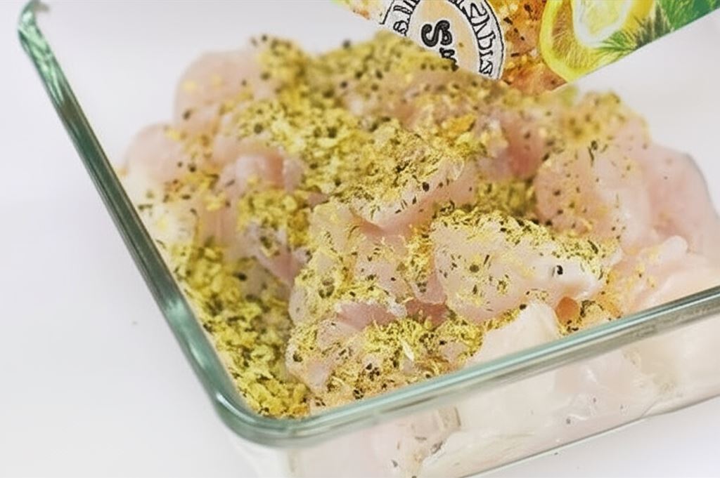 Rybę potnij w kostkę i posyp przyprawą Knorr.