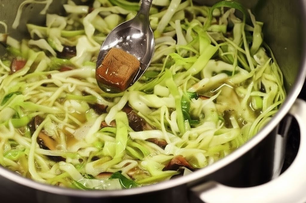 Wrzuć kostkę Knorr, gotuj wszystko razem przez około 30 minut, dopóki kapusta nie zmięknie.