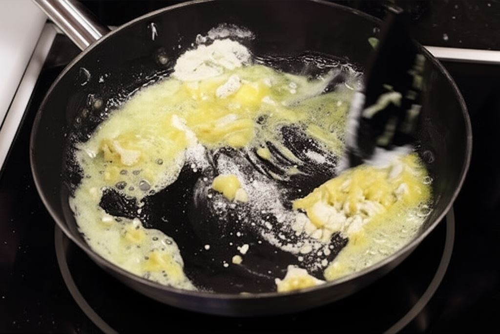 Roztop masło na patelni, wymieszaj z mąką, wlej do kapusty ciągle mieszając.