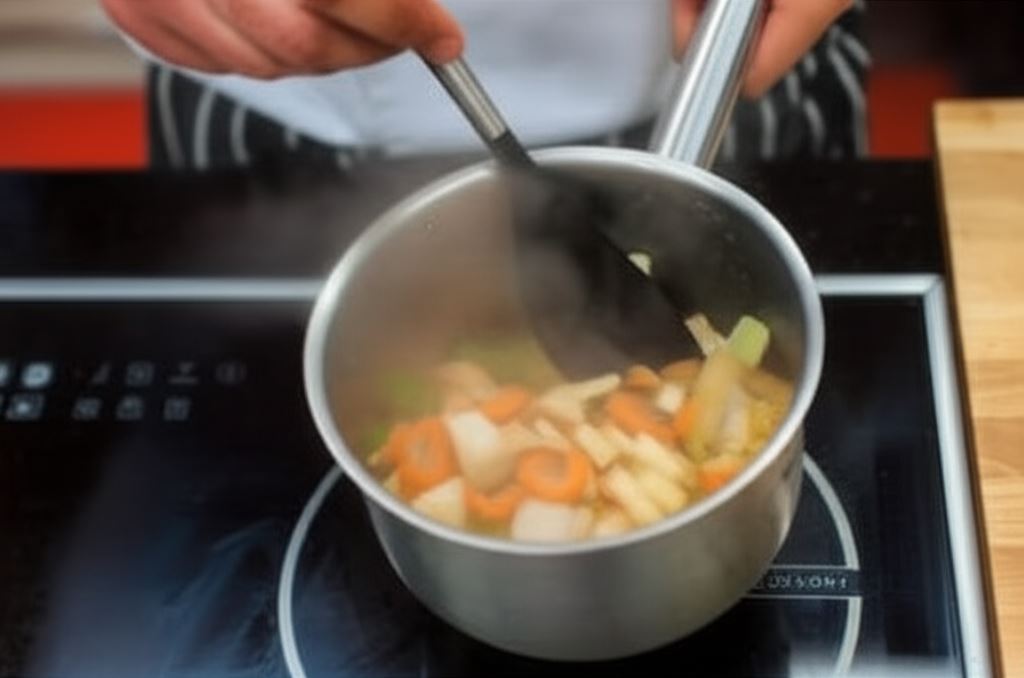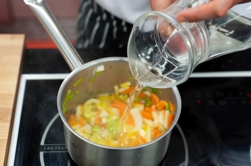 Zalej warzywa 600 ml wody i gotuj na małym ogniu przez 45 minut.