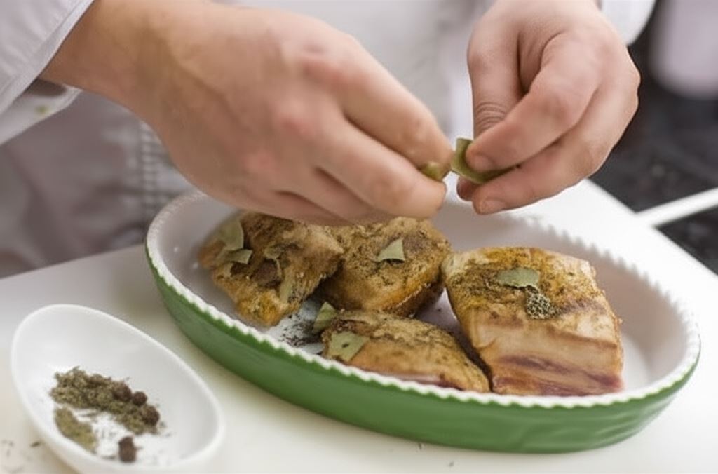 Dodaj liść laurowy i tymianek do przyprawienia.