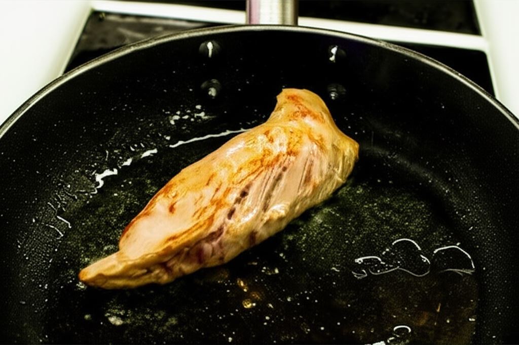 Polędwiczkę cielęcą oczyść z błonek. Lekko posól i przyrumień z każdej strony. Zielony groszek odstaw, by osiągnął temperaturę pokojową.