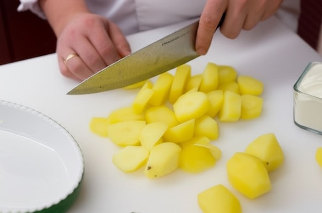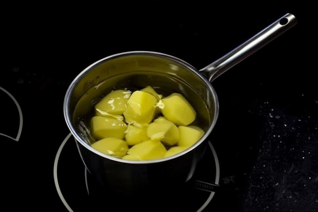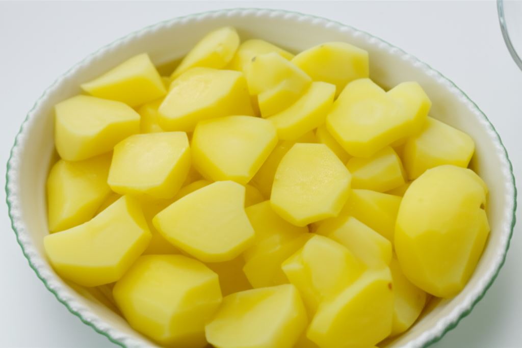 Obierz ziemniaki i gotuj je przez 15 minut w osolonej wodzie, następnie odcedź.