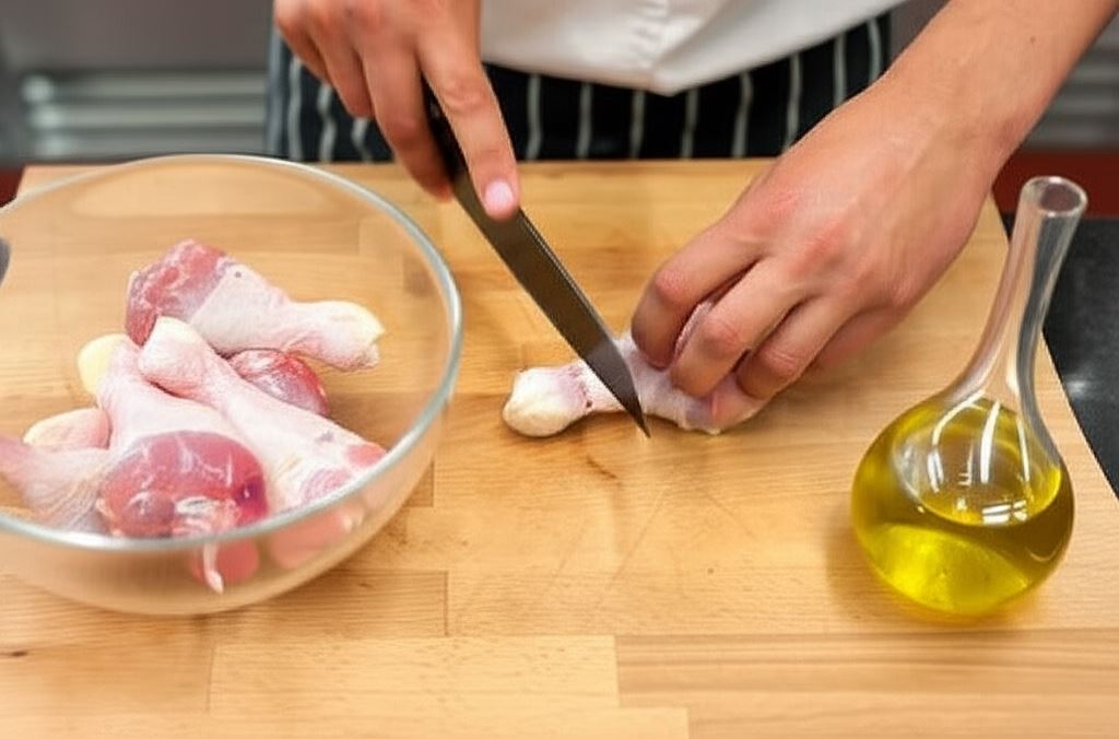 Pałki opłucz, wysusz i następnie natnij nożem skórę wokół kostek.