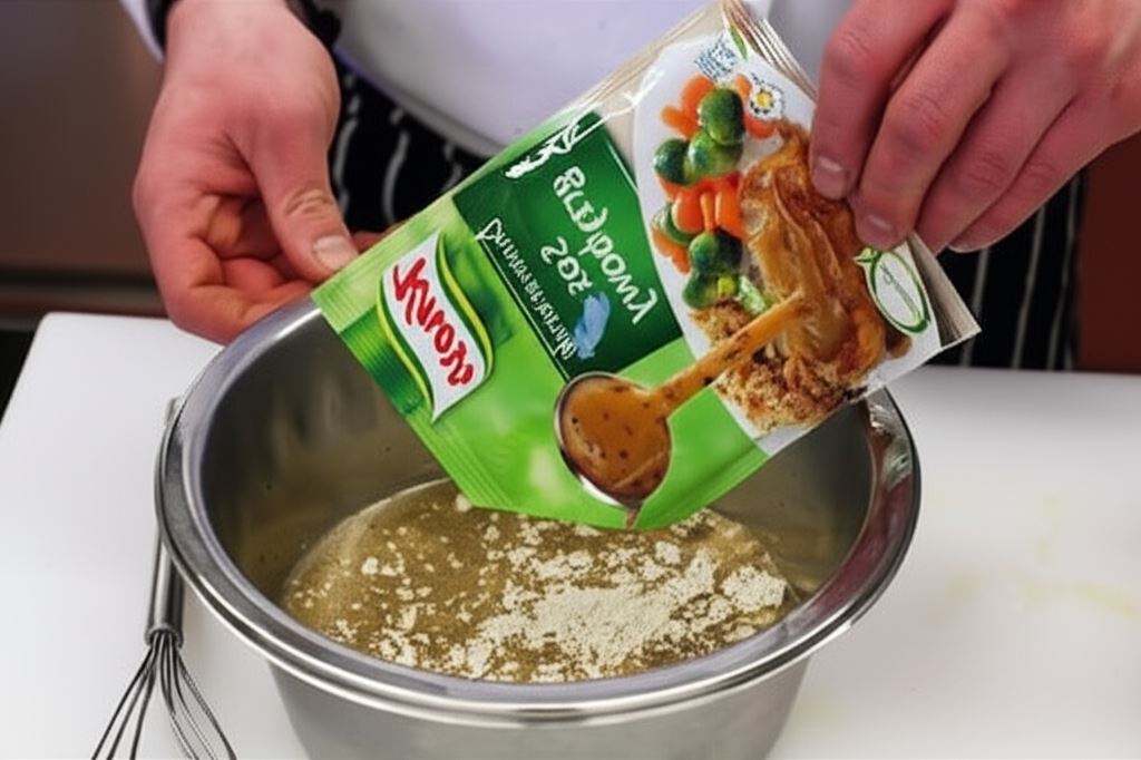 Sos grzybowy Knorr wymieszaj w 300 mililitrach wody i polej nim zrazy.