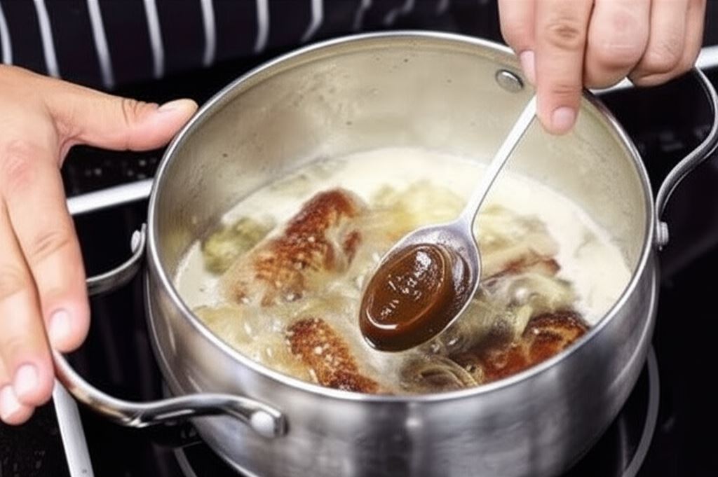 Potem wlej do garnka 500 ml wody, doprowadź do wrzenia, dodaj kostkę rosołową wołową Knorr, która poprawi smak dania. Następnie duś zrazy aż staną się miękkie (około 1 godziny). Pamiętaj, aby przed serwowaniem wyciągnąć wykałaczki. Gotowe zrazy serwuj z ulubioną kaszą.