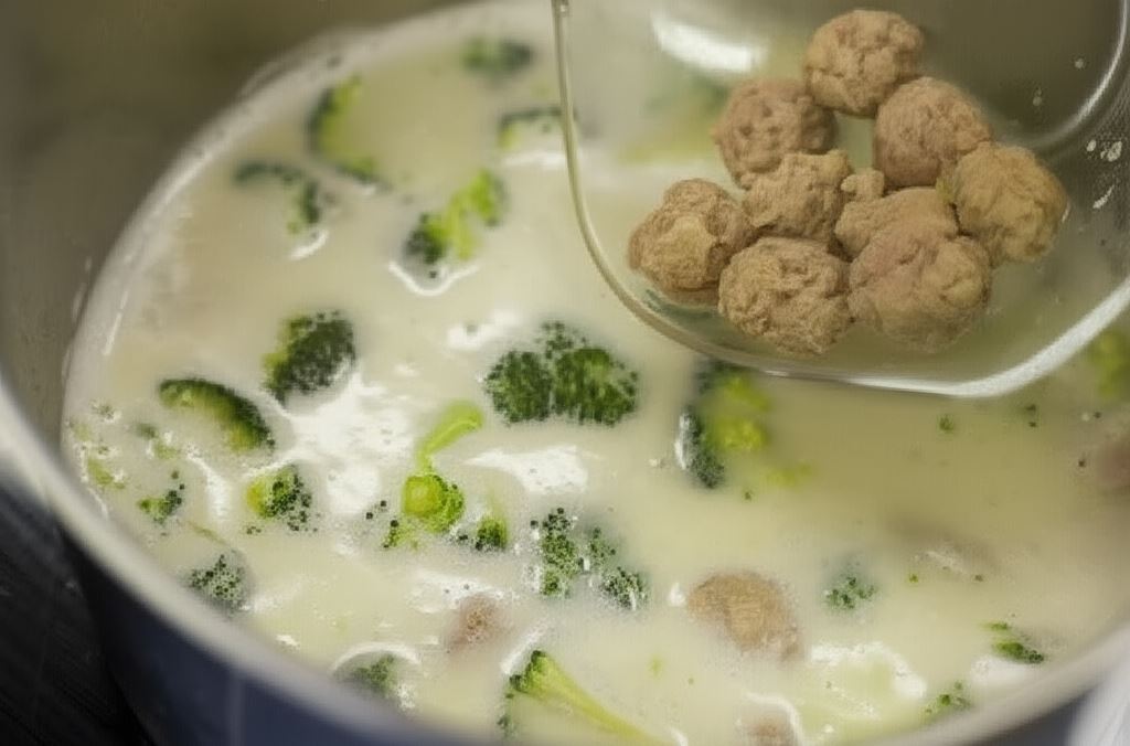 Aksamitna Zupa Brokułowa z Serkiem Topionym i Pulpecikami