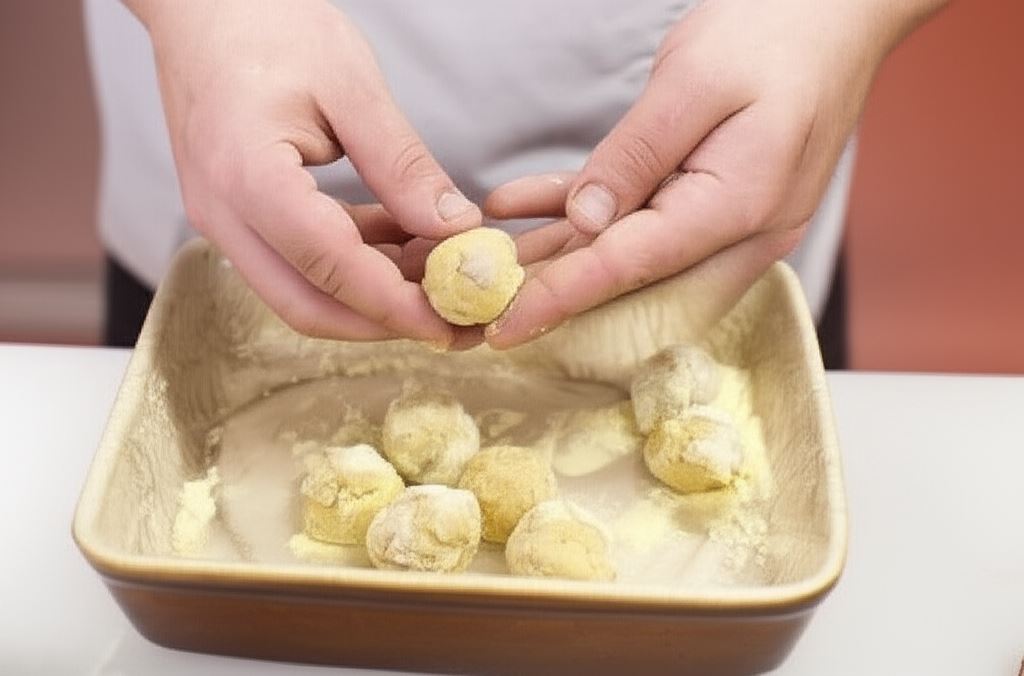 Z przygotowanej masy uformuj klopsiki i obtocz je w mące.