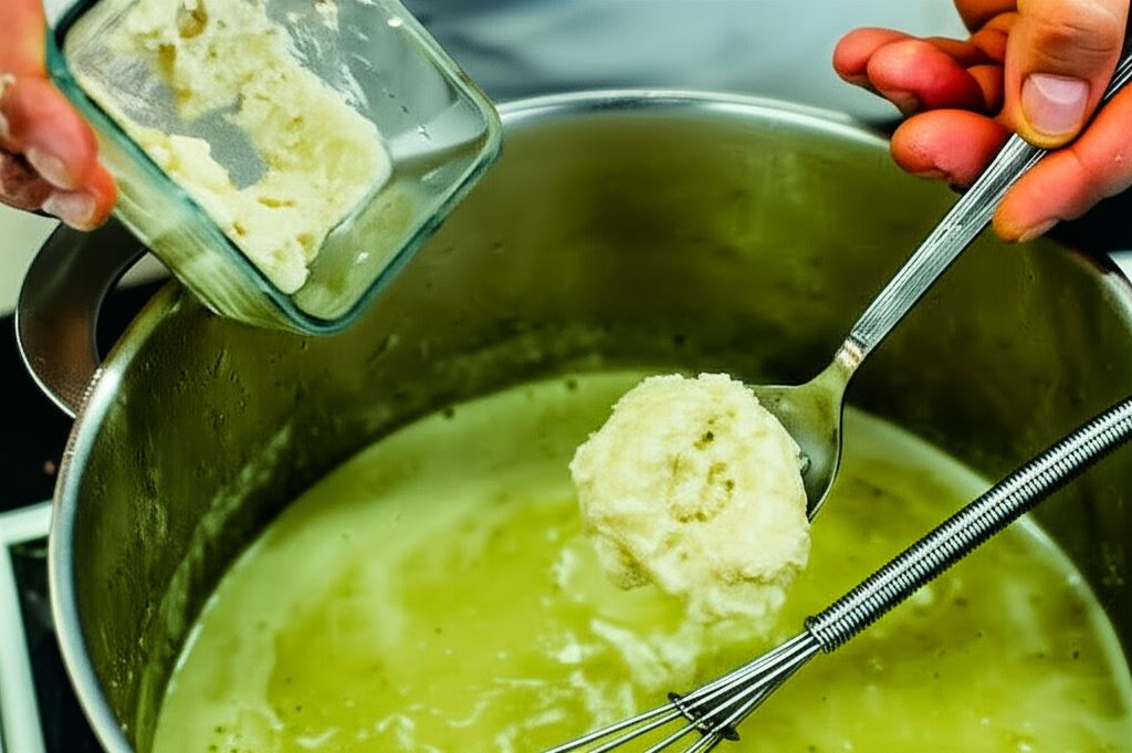 Dodaj do wywaru chrzan i śmietanę, następnie gotuj przez około 15 minut, aż zupa nabierze smaku chrzanu.