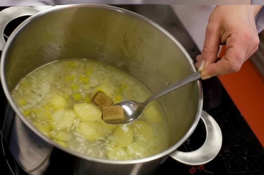 Wrzuć 2 kostki Knorr. Gotuj zupę około 30 minut - aż do chwili, gdy ziemniaki staną się całkowicie miękkie.