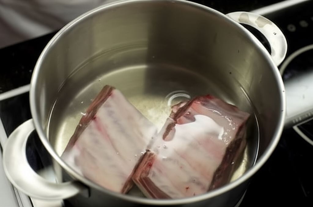 Pokryj mięso około litrem zimnej wody, a następnie doprowadź do wrzenia.