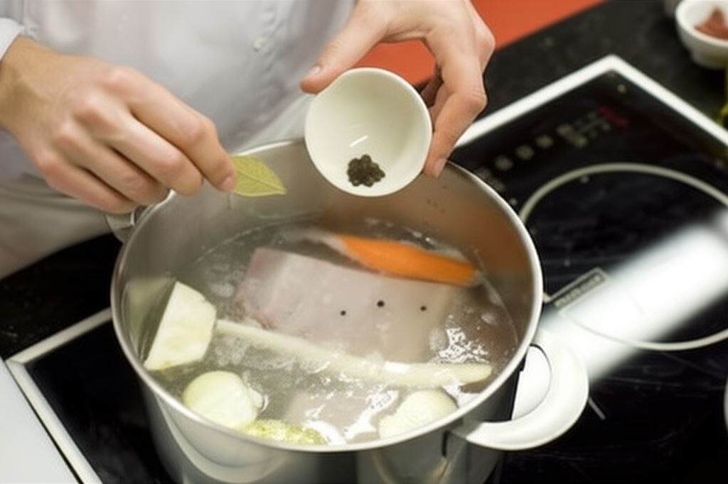 Usuń powstałą pianę, wsyp przyprawy i warzywa. Gotuj aż mięso stanie się całkowicie miękkie, a wywar uzyska odpowiedni aromat.