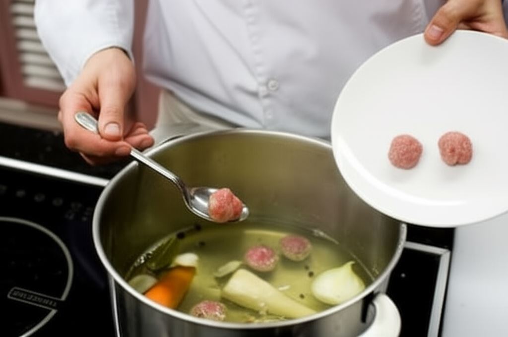 Wrzucaj stopniowo mięsne kulki, mieszając wywar co jakiś czas.