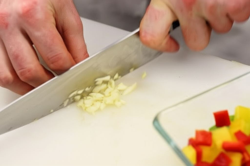 Papryki i cebulę pokrój w kosteczkę. Czosnek drobno posiekaj.