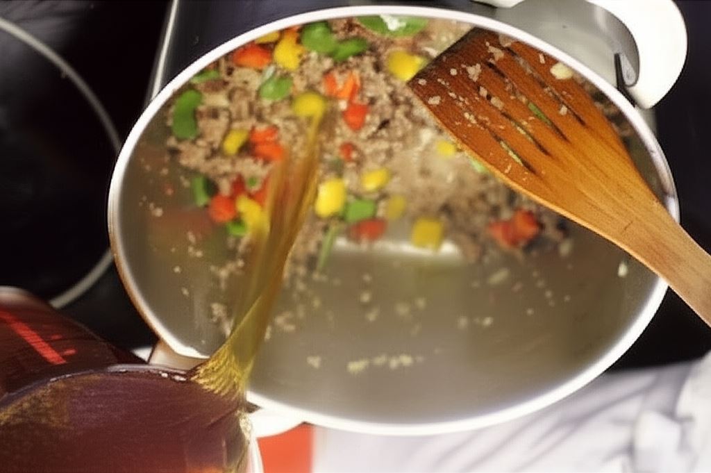 Wlej 0,75 litra bulionu i gotuj aż mięso będzie miękkie.