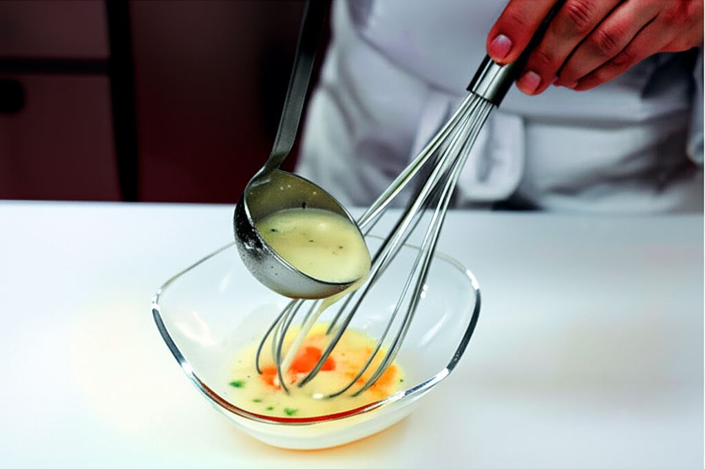 Połącz żółtka z małą porcją gorącej zupy i wlej do garnka.