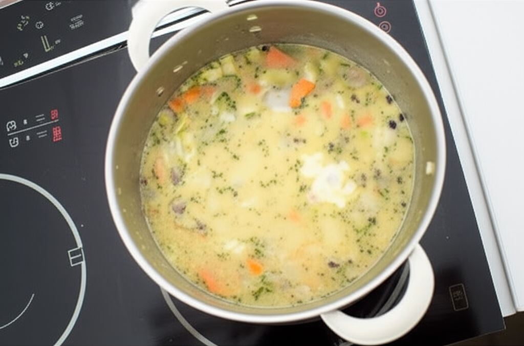 Wsyp do gotowego bulionu jedną lub dwie Kremowe zupy z kurek Knorr (zależnie od ilości wywaru).