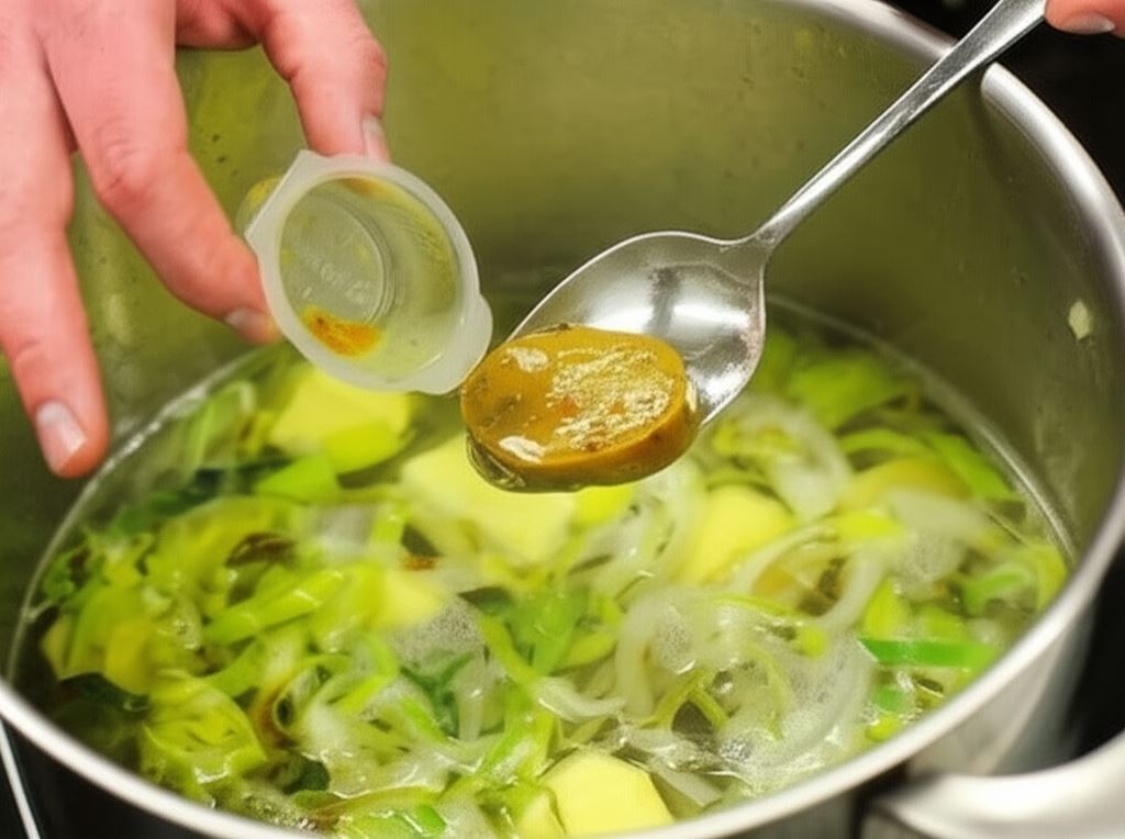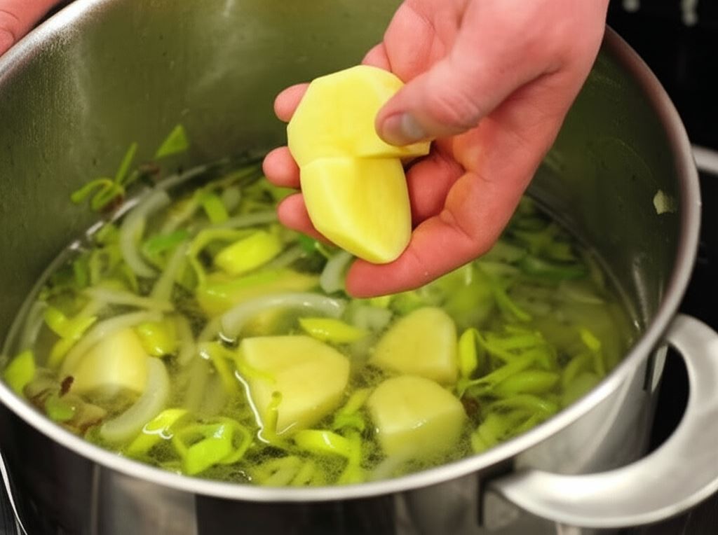 Wsyp Bulion na włoszczyźnie Knorr i wszystko gotuj do momentu, aż ziemniaki będą miękkie, czyli przez około 15 minut.
