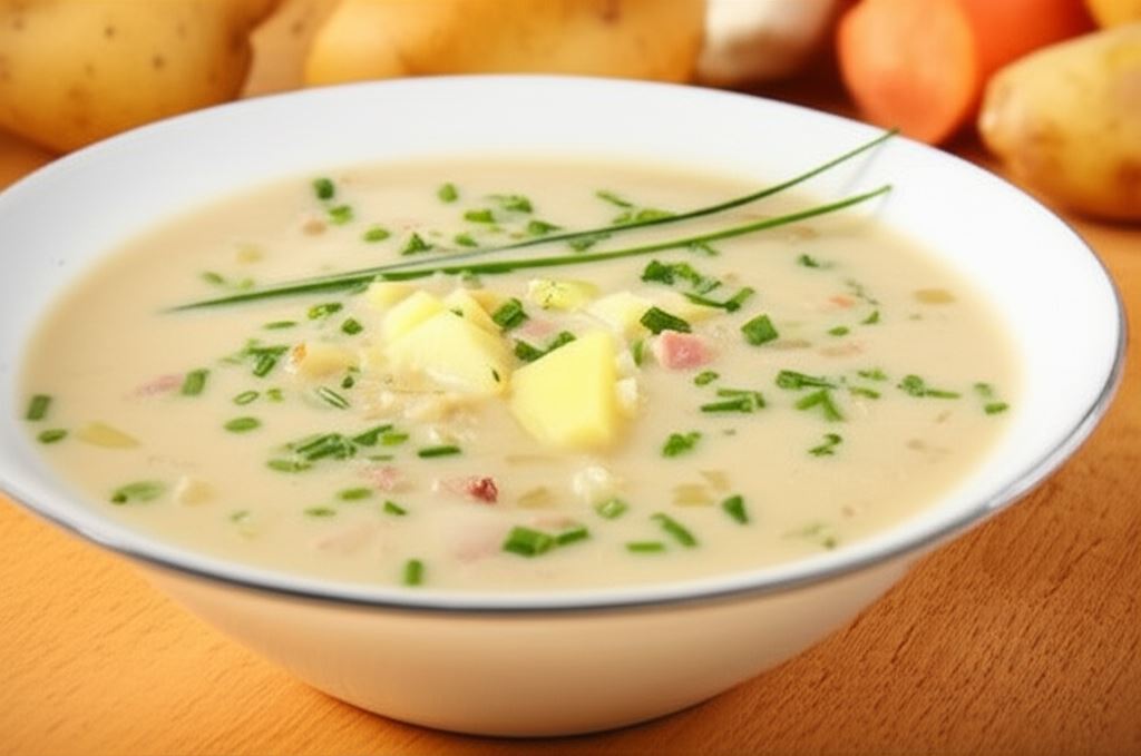 Zupę możesz podać z chrupiącymi grzankami czosnkowymi lub świeżą pajdą wiejskiego chleba. Dla bardziej wyrazistego charakteru dodaj chips z plastra boczku lub posyp startym parmezanem. Jeśli lubisz eksperymenty, wzbogać zupę klopsikami z ziołami lub posyp ziołowymi grzankami. Świeży szczypiorek lub natka pietruszki dodadzą potrawie świeżości i koloru.