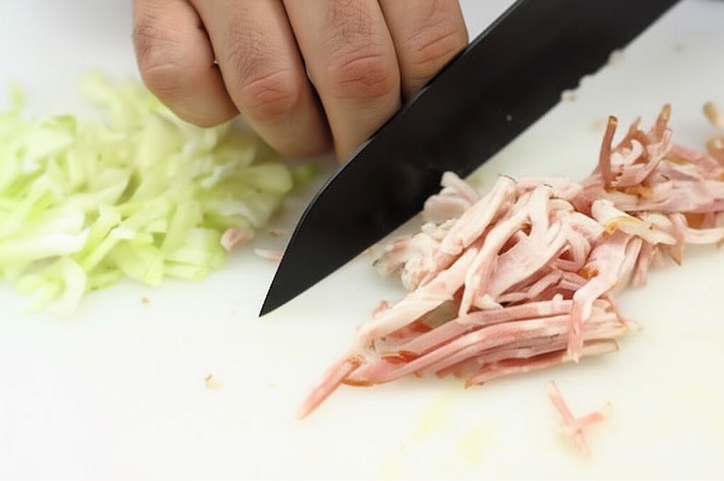 Cebulę obierz i posiekaj na drobną kostkę, boczek na cienkie paski.