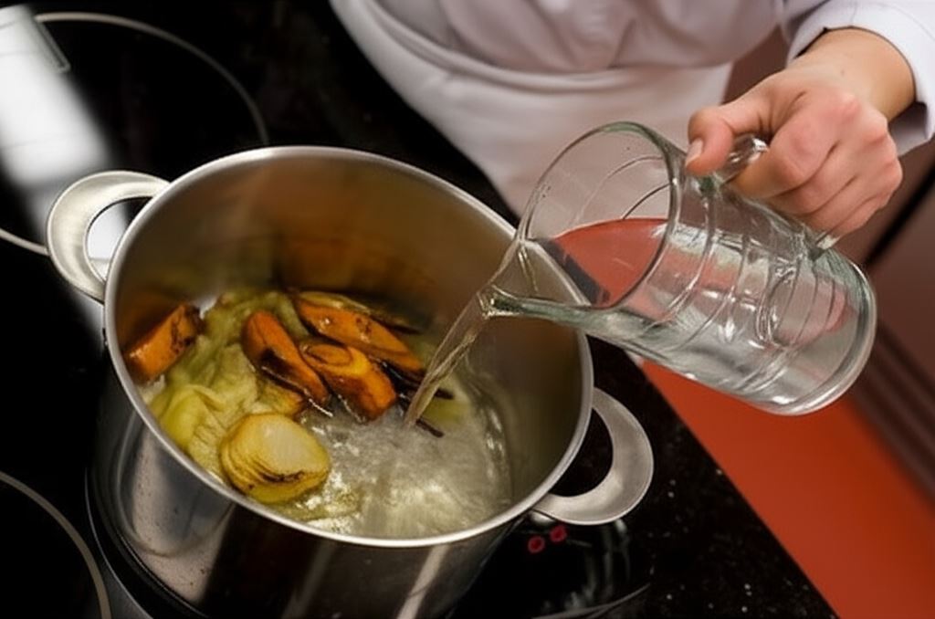Wlej 1,5 litrem wody i zagotuj do wrzenia. Wsyp 2 kostki Rosołu szlachetnego drobiowo - warzywnego Knorr i przygotowane pomidory.