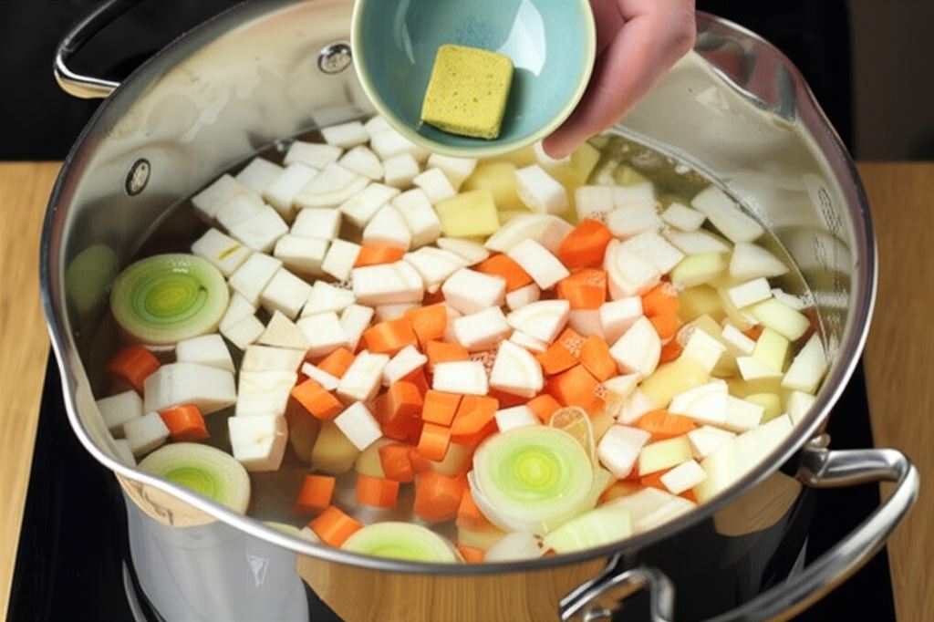 Obierz ziemniaki i warzywa korzenne, następnie pokrój je w kostkę. Zalej wodą, wsyp kostkę Knorr i gotuj aż będą miękkie.