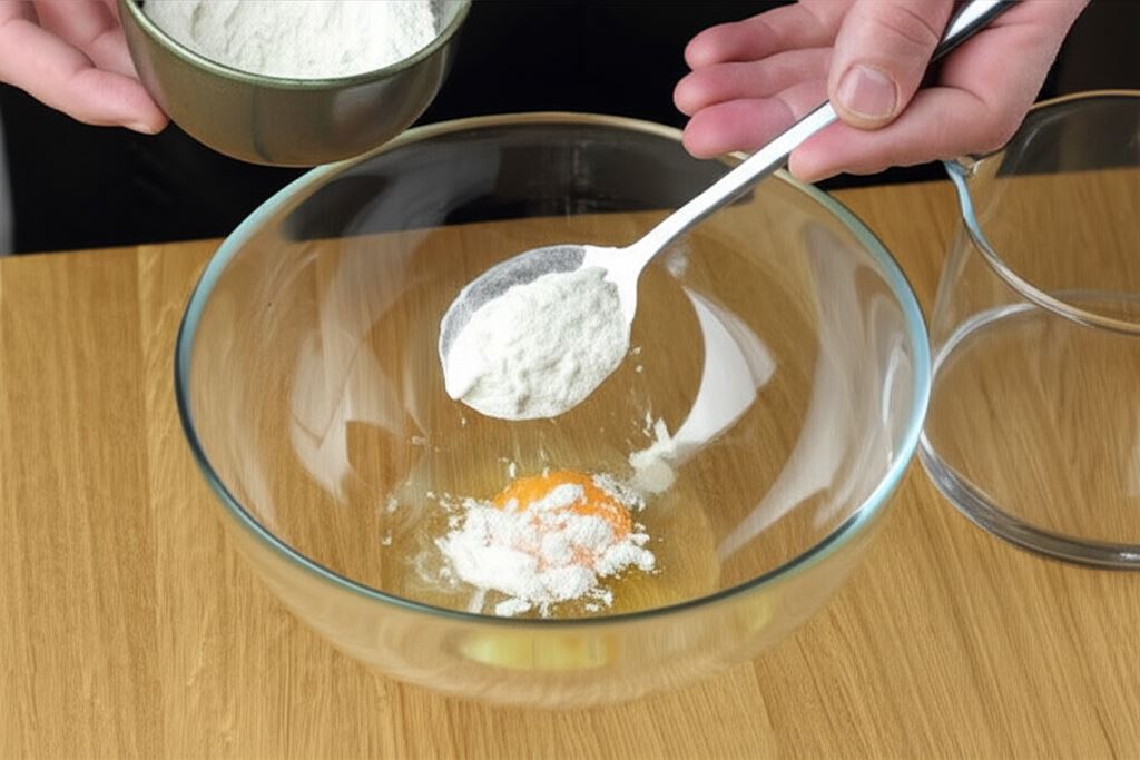 Wbij jajko do miseczki, wsyp mąkę, wlej wodę i starannie wymieszaj.