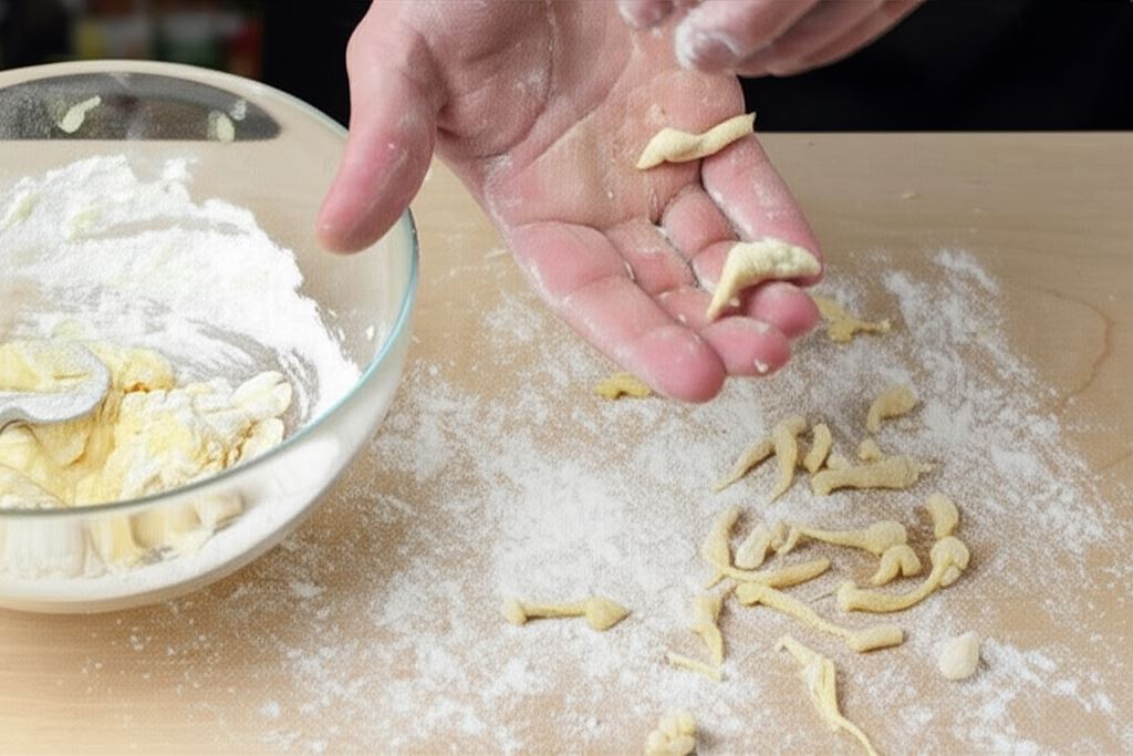Z tak przygotowanego ciasta uformuj rękami zacierki.