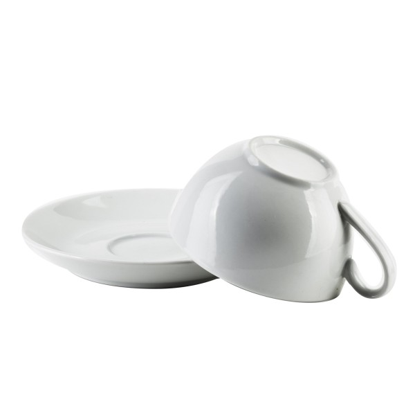 Filiżanka wykonana z porcelany oferuje dobrą izolację termiczną, co pozwala dłużej cieszyć się gorącym napojem. Prosty, biały design ułatwia dopasowanie do istniejącej zastawy stołowej i nadaje się zarówno do codziennego użytku, jak i na przyjęcia. Kompaktowe wymiary i ergonomiczny kształt spodka poprawiają wygodę serwowania i przechowywania.