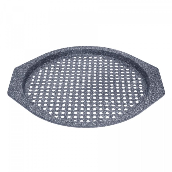 Blacha wykonana ze stali pokrytej marmurkową powłoką non-stick zapewnia trwałość i łatwość konserwacji. Powłoka zapobiega przywieraniu, co skraca czas przygotowania i ułatwia czyszczenie — wystarczy przetarcie miękką gąbką po ostudzeniu. Perforowany design poprawia przewodzenie ciepła i odprowadzanie wilgoci, dzięki czemu ciasto lepiej się piecze i uzyskuje równomierny, chrupiący spód.