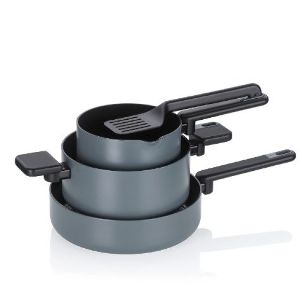 Zestaw garnków, KELA, Mira, 5 elementów, ciemny szary to praktyczny komplet naczyń kuchennych przeznaczony do codziennego gotowania, smażenia i serwowania potraw. Zestaw sprawdza się w kuchniach domowych i małych gospodarstwach, zapewniając wygodę użytkowania, oszczędność miejsca i łatwość utrzymania czystości. Zestaw garnków, KELA, Mira, 5 elementów, ciemny szary łączy nowoczesny design z funkcjonalnymi rozwiązaniami, co czyni go idealnym wyborem dla osób ceniących trwałość i estetykę.