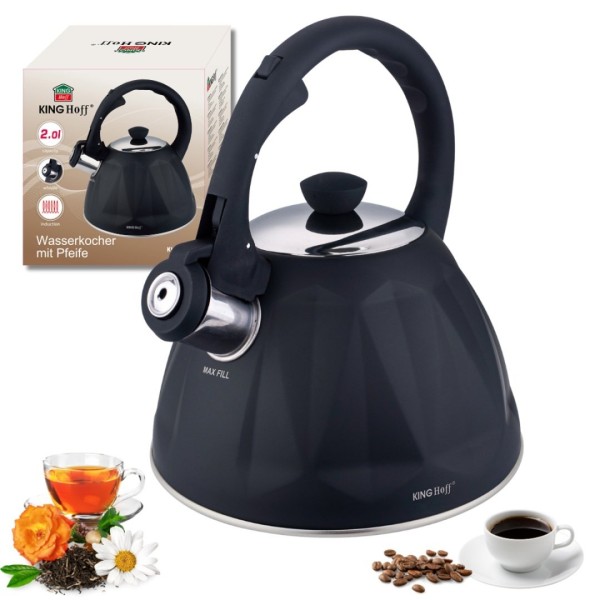 Czajnik KINGHoff KH-1997 do kuchenki, 2 l, gwizdek, czarny mat