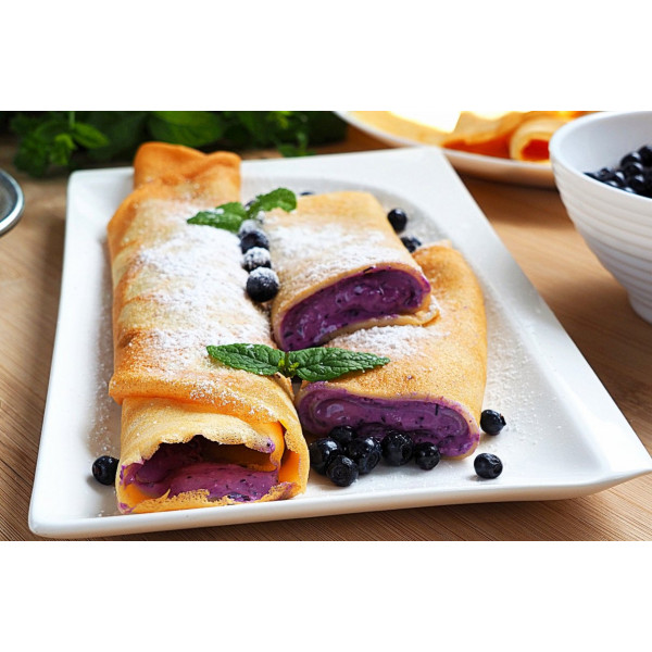 Składniki: mleko (39%), ser twarogowy (30%), mąka pszenna (16%), borówki(9%), cukier biały, cukier waniliowy, masło (5%), jaja kurze, woda, cukier waniliowy, sól. Alergeny wyróżnione wytłuszczoną czcionką.
