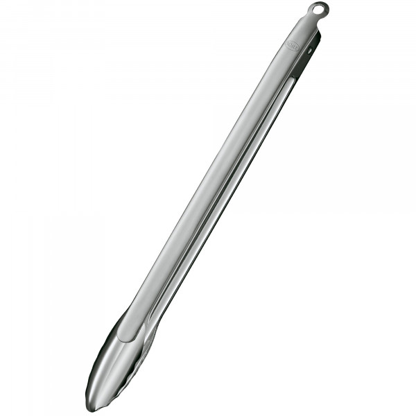 Szczypce kuchenne, Roesle, uniwersalne 40 cm z blokadą to praktyczne narzędzie do gotowania i serwowania potraw, przeznaczone do precyzyjnego chwytania i przenoszenia żywności. Produkt ułatwia obracanie mięs, serwowanie sałatek i wyjmowanie potraw z gorących naczyń, oferując wygodę obsługi i bezpieczne użytkowanie dzięki blokującemu mechanizmowi.
