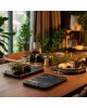 Ідеальне серверування включає в себе правильний вибір столового посуду, узгодження кольорів і матеріалів, правильне розміщення приборів і склянок, а також декоративні елементи, які підкреслять тематику та стиль події. Основні складові: - Набори тарілок різного розміру (основні, десертні, салатні); - Столові прибори: виделки, ножі, ложки; - Скляний посуд: келихи для води, вина, швепса; - Серветки, серветниці та підставки; - Декоративні елементи для створення атмосфери (свічники, центральні композиції).